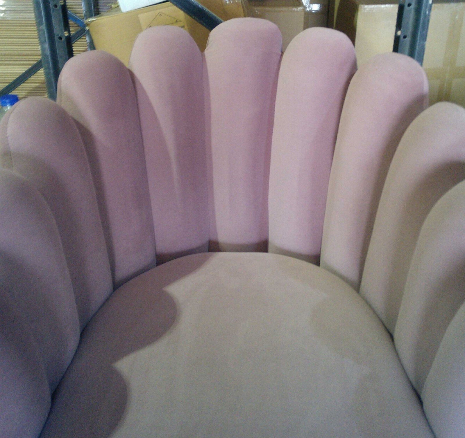 Aurora Art Deco Pink Velvet Scalloped Occasional Chair Gold Legs Shell Armchair SECONDS