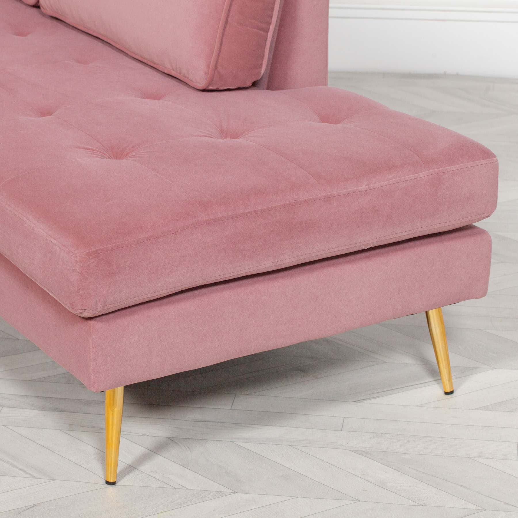 Adeline Pink Velvet Chaise Longue With Gold Legs