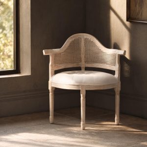 First, let’s consider creating reading nooks. Have you always dreamed of having a home library but struggled to find the space? This space-saving solution will help you carve out a cosy escape, requiring only a few key items to create your reading haven. Start with an accent chair, which provides comfortable seating and frames the space, welcoming your colour scheme and adding pattern. A rug underneath will define the reading nook, adding texture and sectioning off the area. Enhance the chair with a throw and cushions that complement your colour palette, creating a comfortable and inviting atmosphere.