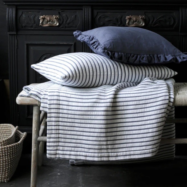 Cotton Blue Stripe 200cm Throw