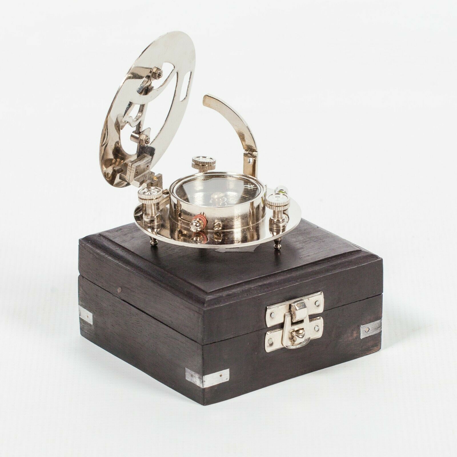 Vintage Style Sundial Nickel Plated Compass With Wooden Box