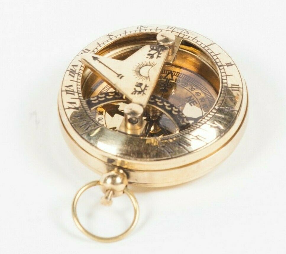 Vintage Style Brass Sundial Pocket Compass 2″