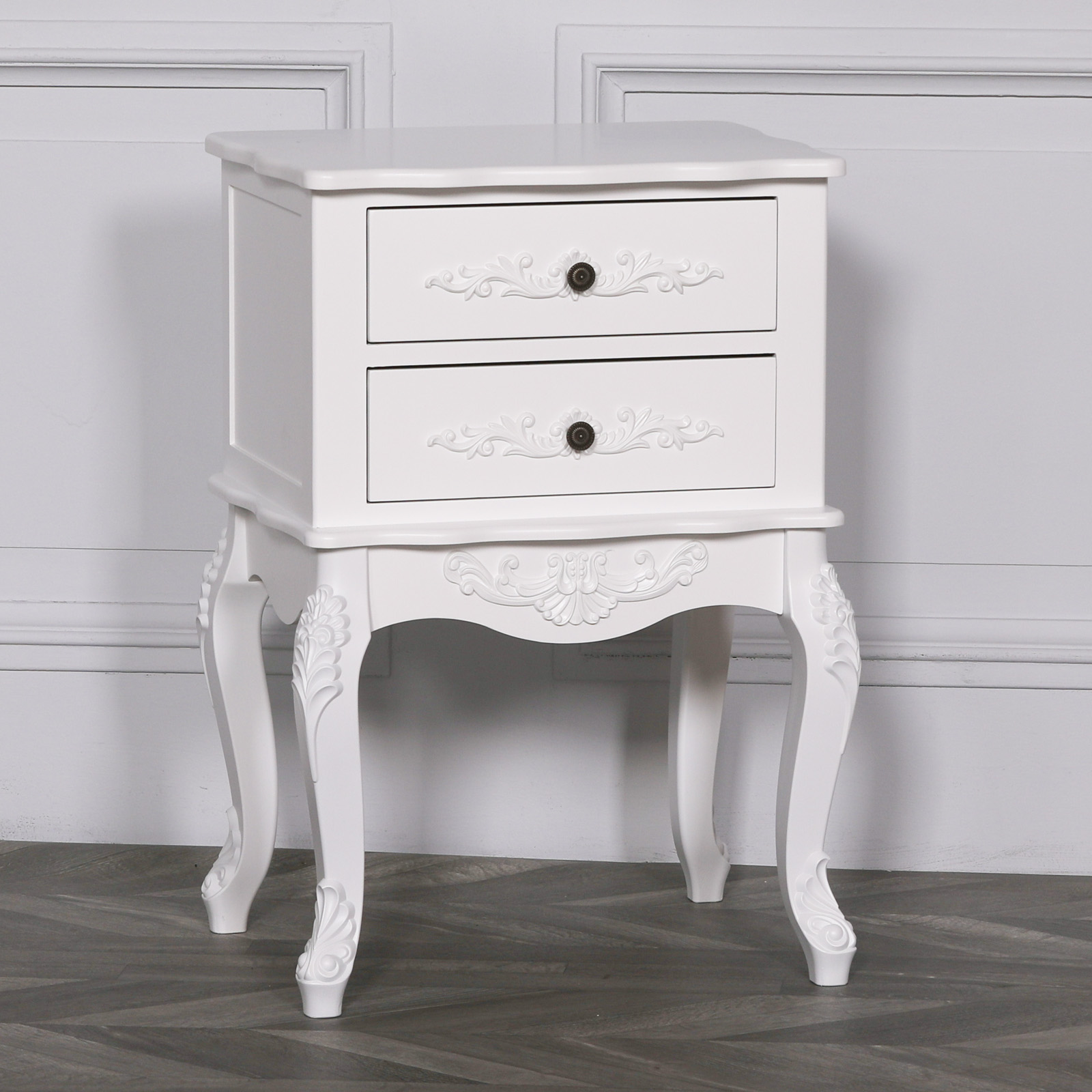 French Style White 2 Drawer Bedside Table