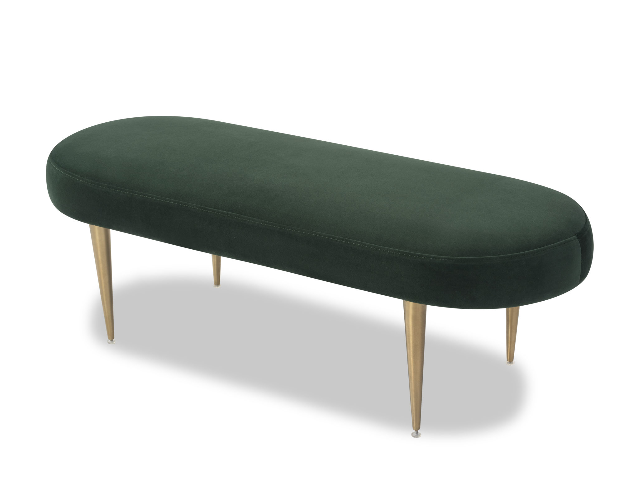 Ida Green Velvet Bench With Brushed Gold Stainless Steel Legs