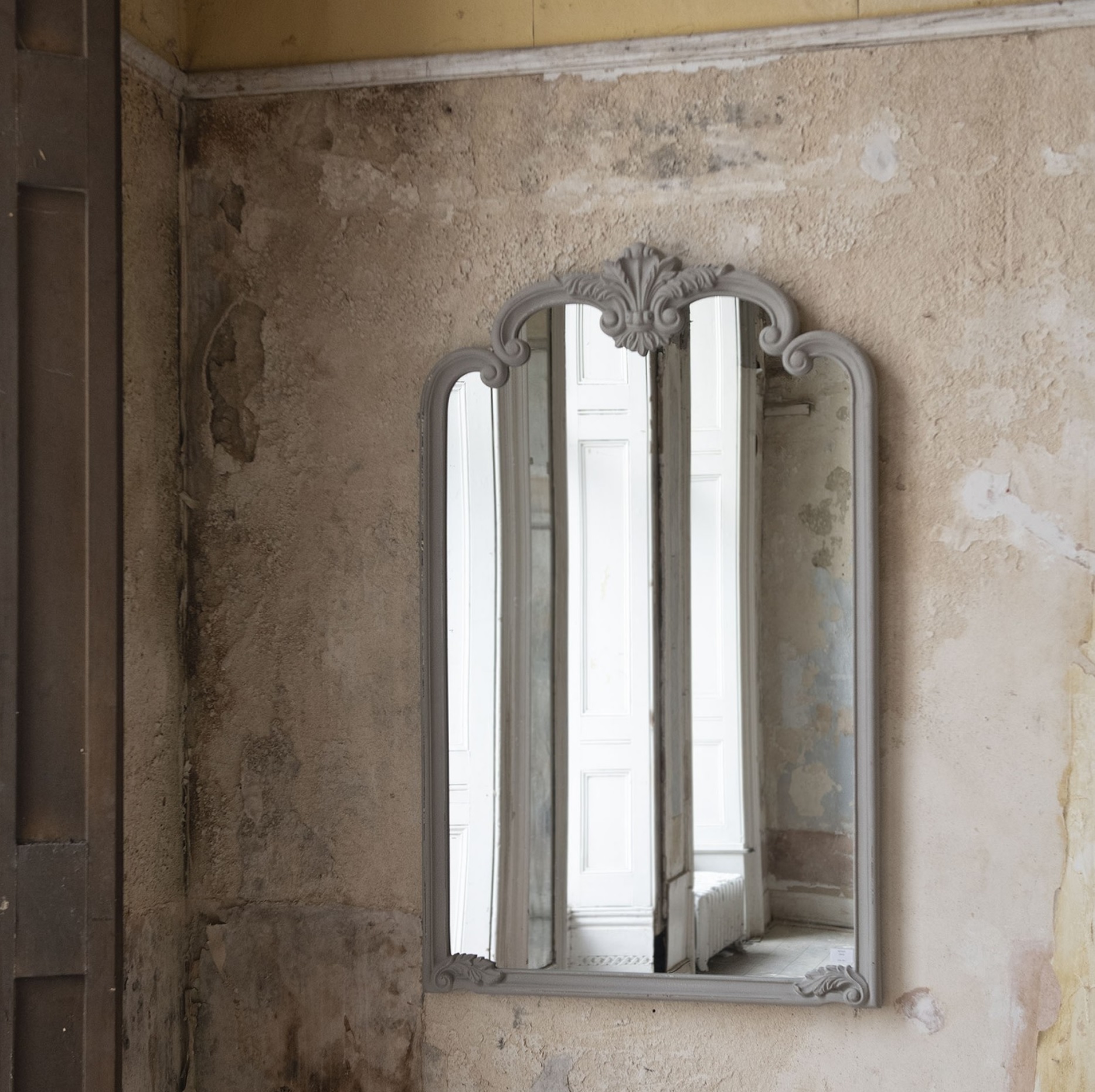 Lya Crest Top Stone Finish Wall Mirror