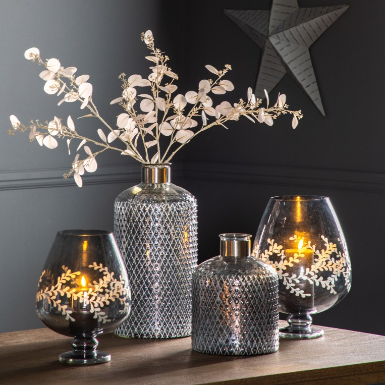 Smoke Grey Glass Hurricane Large Candle Holder (Copy)
