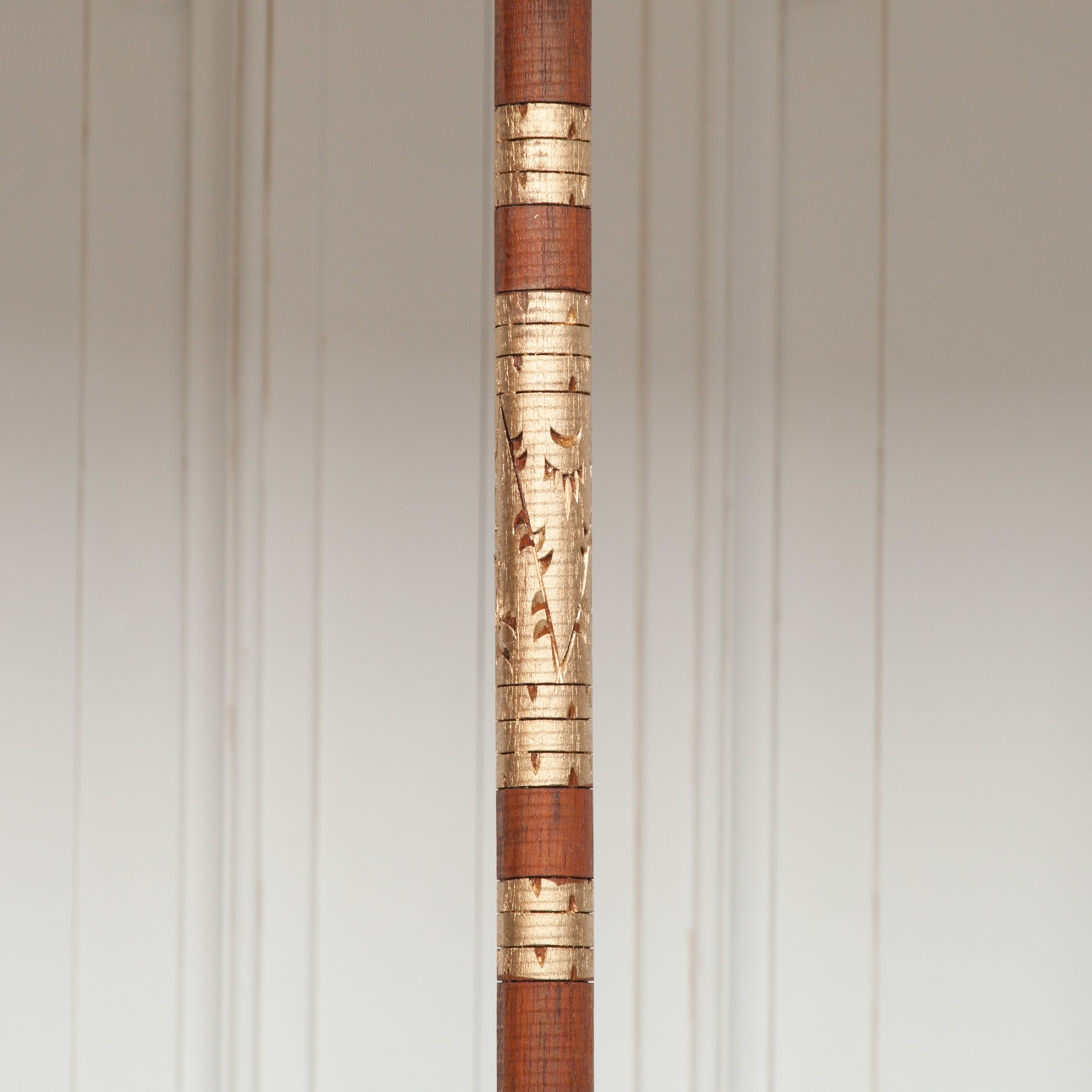 Large Indonesian Off White Bali Outdoor Umbrella Mahogany Parasol Gold Accents